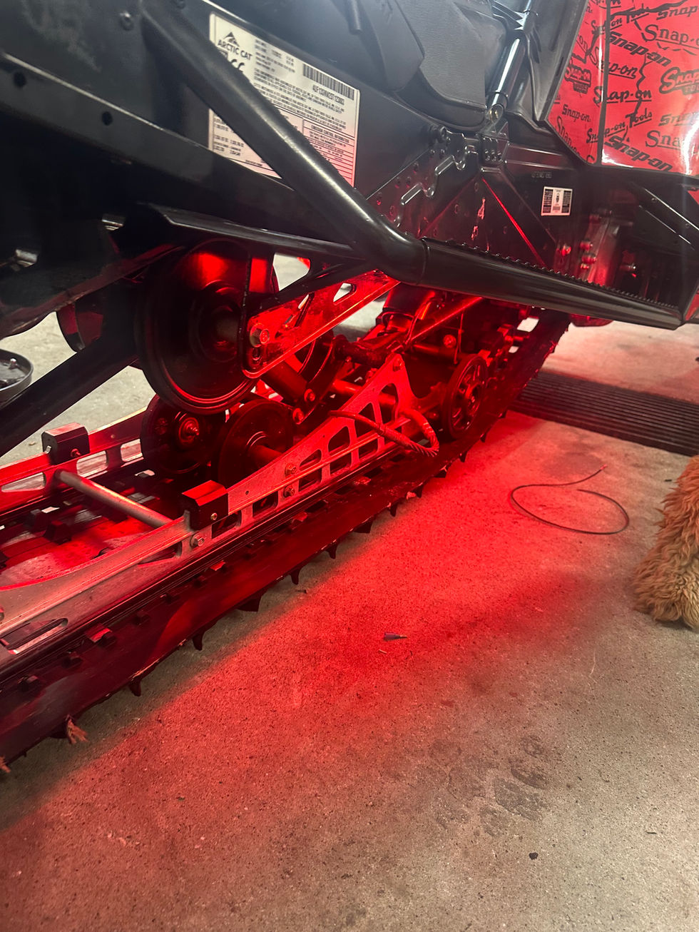Installed red Southern Lite LED snake tube lights under this beast. Installed custom switch for the operator to easily access.