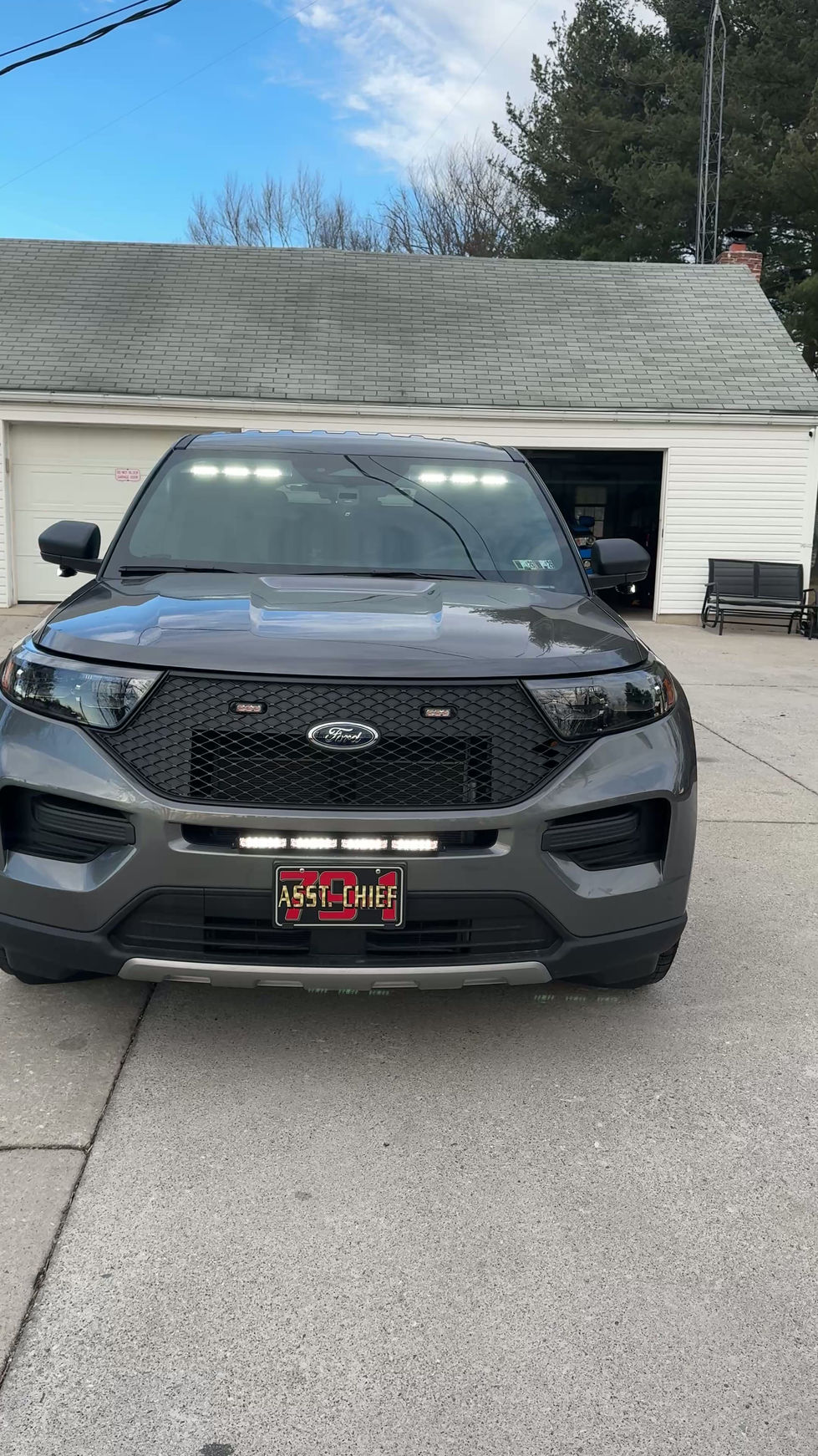 This 2026 Ford Explorer FPIU comes with the slick top vibes. Feniex visors custom for a perfect glass fit. Feniex Q3's in the grille cutaways. Feniex 400 series stick light underneath the grille. Utilized the factory wig wag and side headlight emergency warning lights configured too red and white. Feniex rocker panel lights. Feniex 600 series stick light secured inside of the hatch. Feniex storm pro200 with two Vanguard 100 watt speakers. Q serial surface mount mirror lights and rear windows and hath makes this explorer eye catching while responding or on scene of any incidents. Havis console contains the 4200 DL controller for lighting and siren functions with ease. Harris radio for county communications and cup holders to can around plenty of water to stay hydrated. The rear of this bad boy houses a custom command box by Rockland Cabinets that will allow the Assistant to carry his turnout gear and SCBA in there, on their dedicated compartments along with other items. Pull out command white board to keep proper accountability of fire personnel on the scene. Feniex dome light to accent the rear cargo area on a tilt switch to allow the light to be operational when the hatch is lifted in the open position.